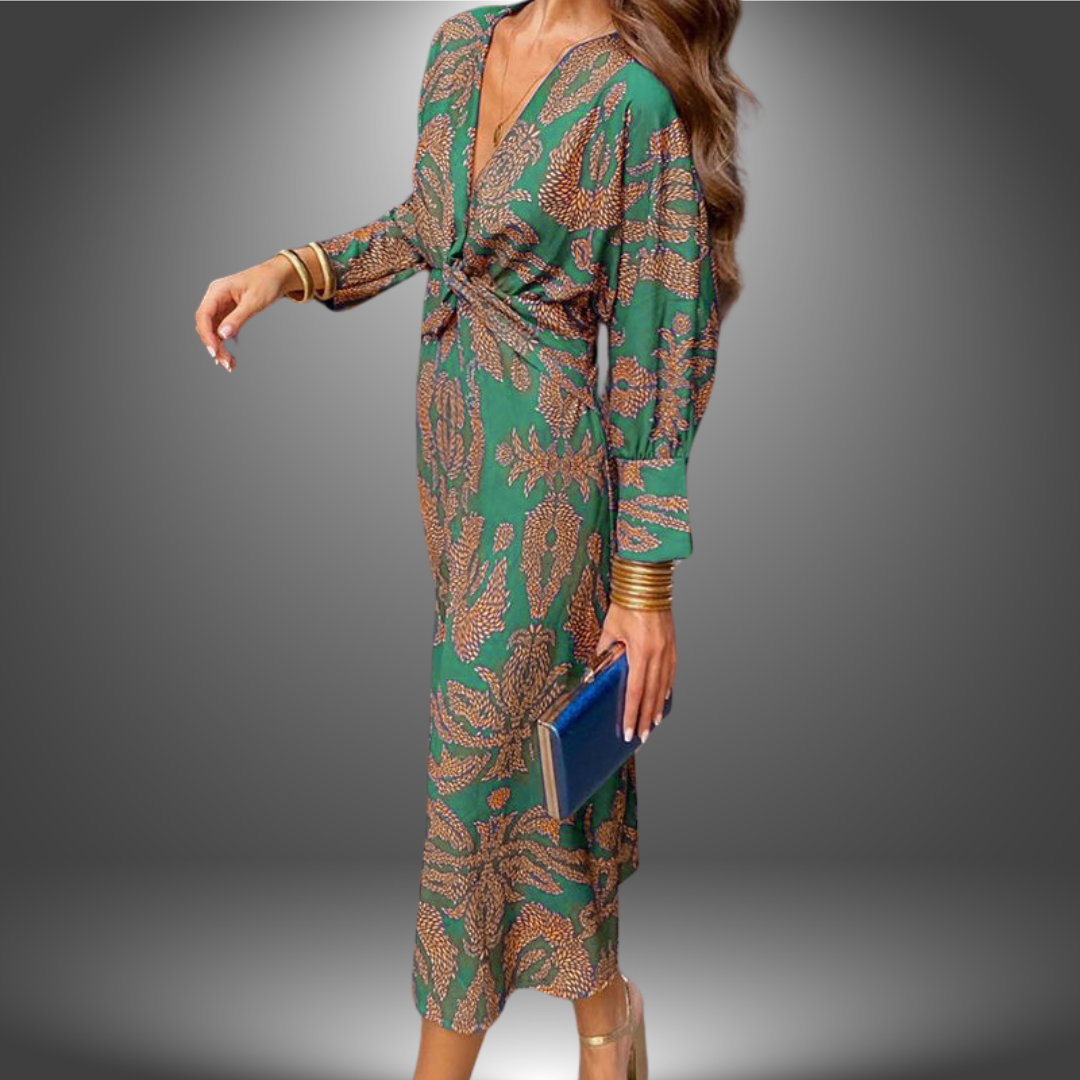 Our best-seller Céline Elegant Dress is designed for women who love timeless elegance with a modern touch. The wrap silhouette accentuates the waist while providing comfort throughout the day, making it perfect for evening events or refined casual looks. Elevate your wardrobe with a dress that embodies effortless sophistication.