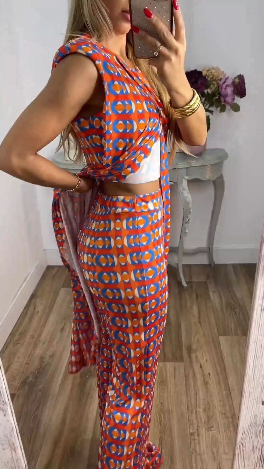 The Skye Printed Comfy Suit by Buvala offers effortless style and all-day comfort. Designed with a lightweight, breathable fabric, this set features a relaxed extended tank top and matching loose-fit pants with an eye-catching abstract print. Perfect for sunny outings, beach strolls, or laid-back coffee dates.